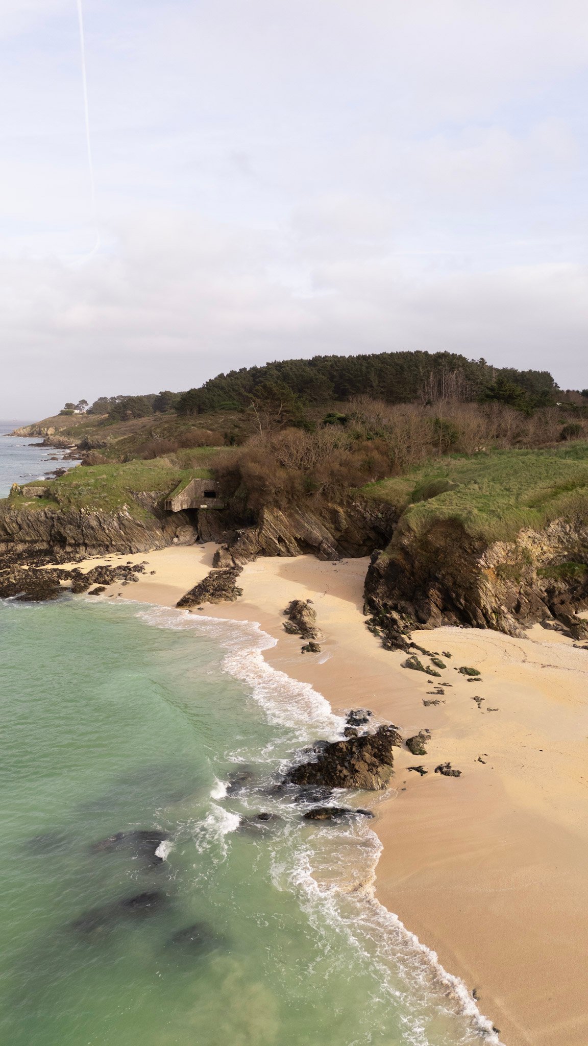 Marche vers le village de Locmaria. Des criques aux eaux cristallines et des plages de sable blanc vous accompagnent tout au long de la journée.